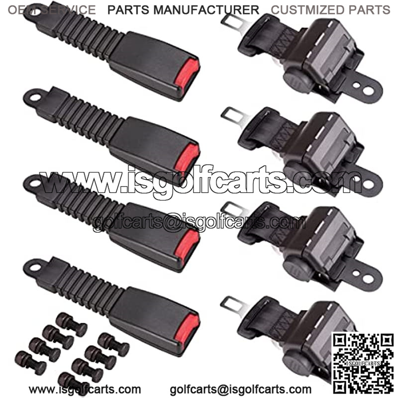 Universal Retractable Golf Cart Seat Belts Kit for EZGO Yamaha Club Car Yamaha Club Car EZGO seat belt kit:Universal Retractable Golf Cart Seat Belt Kit for EZGO/Yamaha/Club Car.Golf cart 4 passenger or 2 passenger seat belts??could be mounted on the front or rear seat.Universal golf cart seat belts:These seat belts can be used as Club car precedent seat belt kit,club car DS seat belts,EZGO seat belt kit or Yamaha seat belt kit.Easy installation:Goods are shipped from the United States,