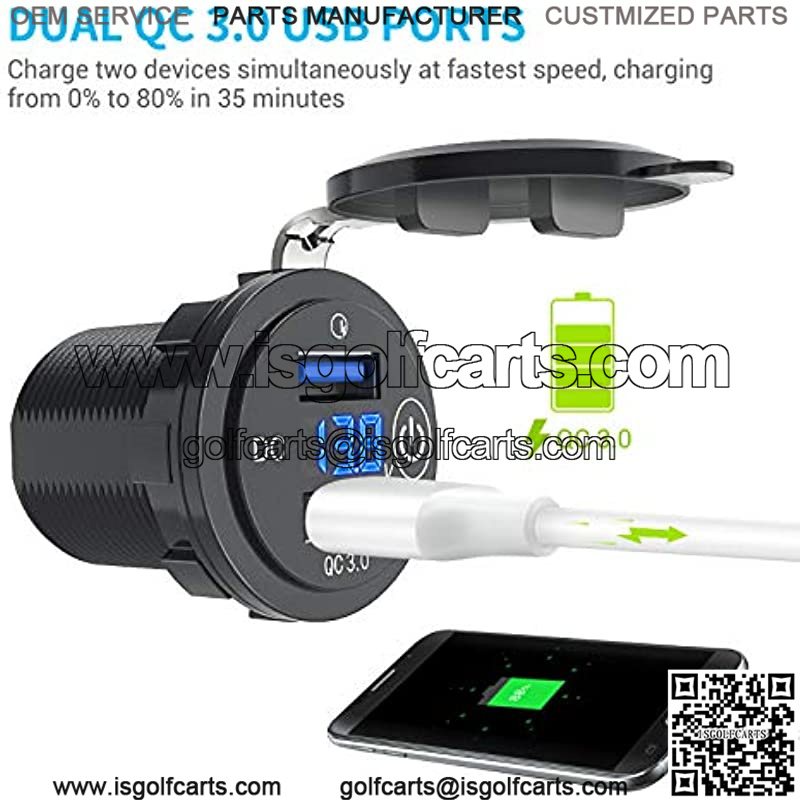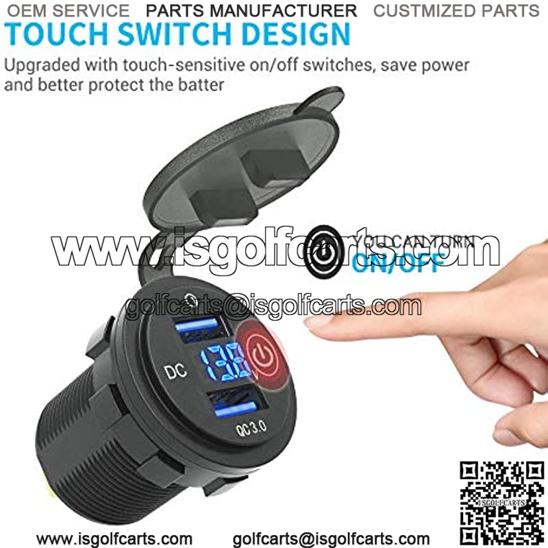 Upgraded Quick Fast Charge 3.0 Dual USB Charger Socket Power Outlet with LED Digital Voltmeter and Touch Switch for 12V/24V Car Truck Golf Cart Boat Marine Motorcycle RV and More