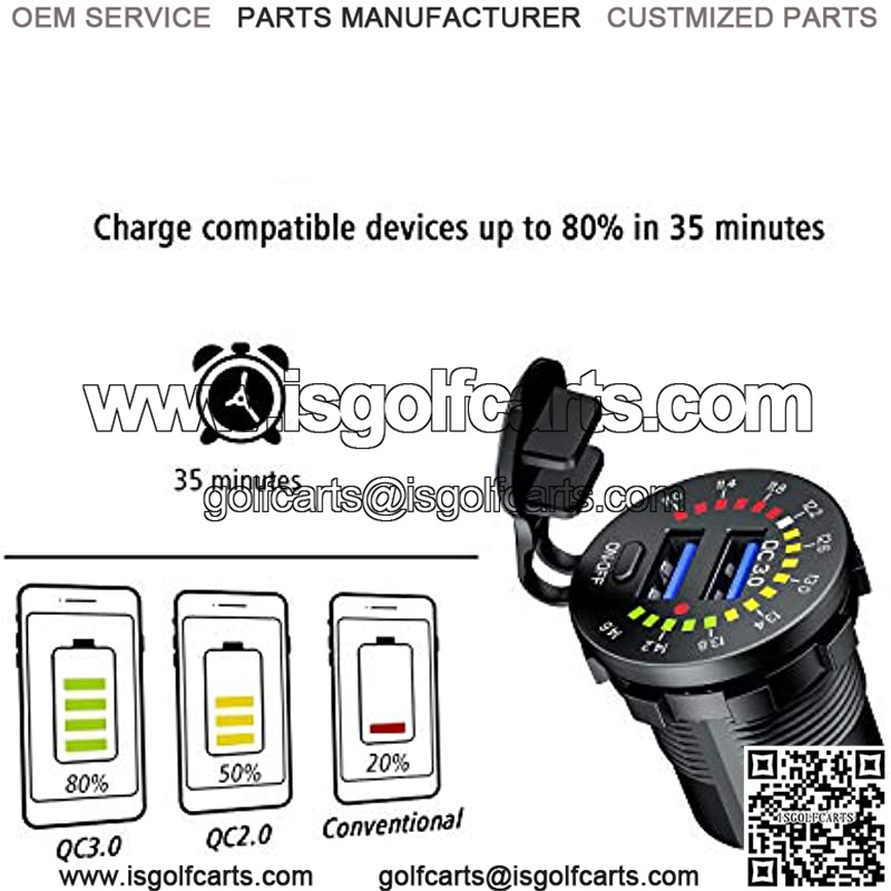 ![[Upgraded Version] Quick Charge 3.0 Dual USB Car Charger Socket with Colorful Voltmeter & ON/Off Switch, 12V USB Outlet for Car Marine Boat Motorcycle ATV Bus Truck and More - Black - Image 3](https://isgolfcarts.com/wp-content/uploads/2025/10/CDQ.009442.jpg)