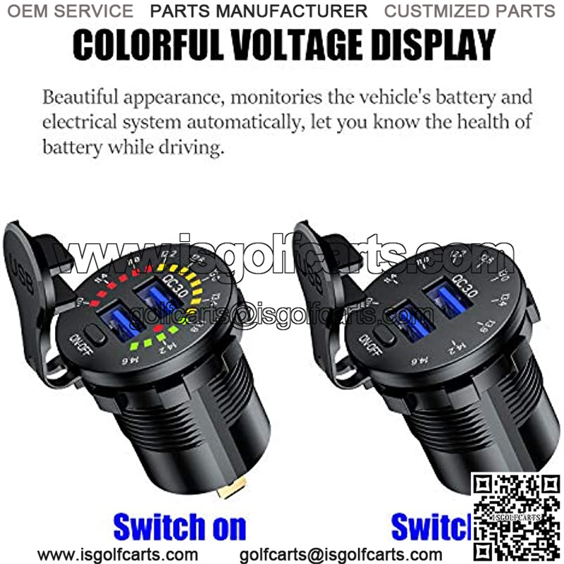 ![[Upgraded Version] Quick Charge 3.0 Dual USB Car Charger Socket with Colorful Voltmeter & ON/Off Switch, 12V USB Outlet for Car Marine Boat Motorcycle ATV Bus Truck and More - Black - Image 2](https://isgolfcarts.com/wp-content/uploads/2025/10/CDQ.009441.jpg)