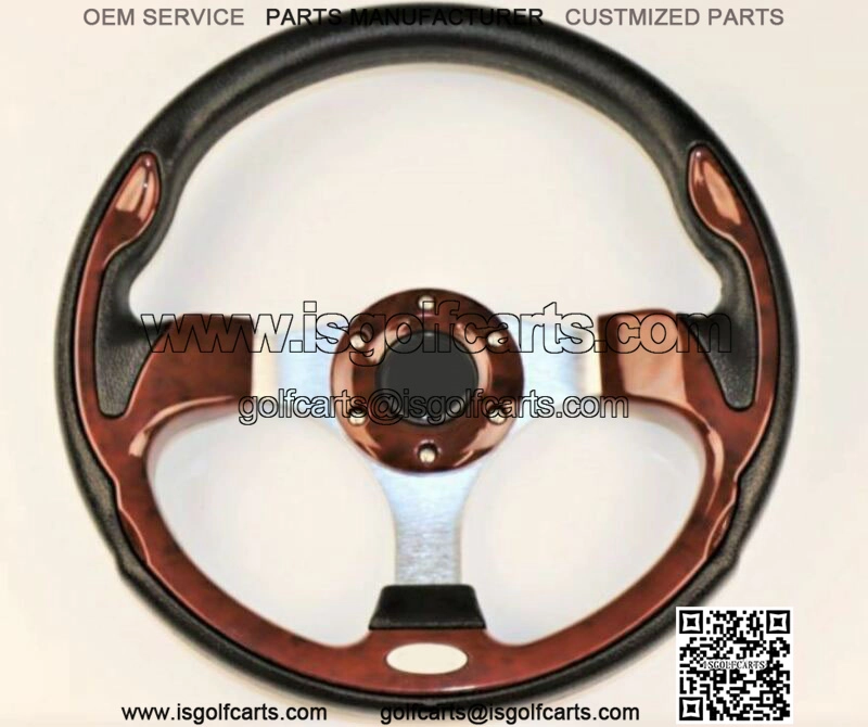 Wood Grain Golf Cart Steering Wheel (Ultra)Features:Fits EZGO YAMAHA Club Car DS Precedent Golf Cart( Adapter Needed and sold separately)Stylish brushed aluminum centerCustomize and add style to your cart.