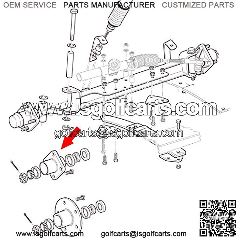 Wheel Hub Assembly for 2001.5-2013 EZGO TXT, Shuttle, Workhorse, ST Series Gas & Electric Golf Cart, with Bearing Races & Cap, OEM# 70895-G01 70895G01, Set of 2