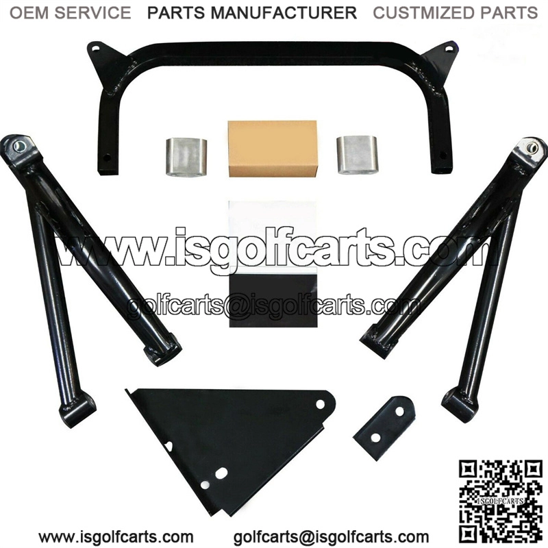Here is our ultra high-quality Yamaha G-Series 6 inch lift kit. Why pay more for a or kit when you can have the same quality at a lower price This lift kit will give your Yamaha G-Series cart a smooth riding 6″ lift so you can fit on that brand new set of (up to) 23″ all terrain golf cart tires on your cart.The 6″ A-Arm Heavy Duty Yamaha Golf Cart Lift Kit is crafted from strong, large diameter steel tubing and comes finished in long lasting black powdercoat that will really dress up the look of your YAMAHA.Fits:Yamaha G-Series model golf carts (G8 – G14, G16, G19, G20)Lift Kit Height:6 inch lift (fits up to 23″ tires)Lift Kit Style:Heavy DutyTire Size Fitment:Up to 23″Construction:All Alloy Class 8.8 high strength hardwareProof load:85,000psiFinish:Black Powder Coating (not paint/no wear) Instructions:CLICK HERE for installation instructionsReplaces and strengthens your Yamaha’s front end! Tubular steel constructed A-frame and rear upper shock support mount.Includes spacers and adapt