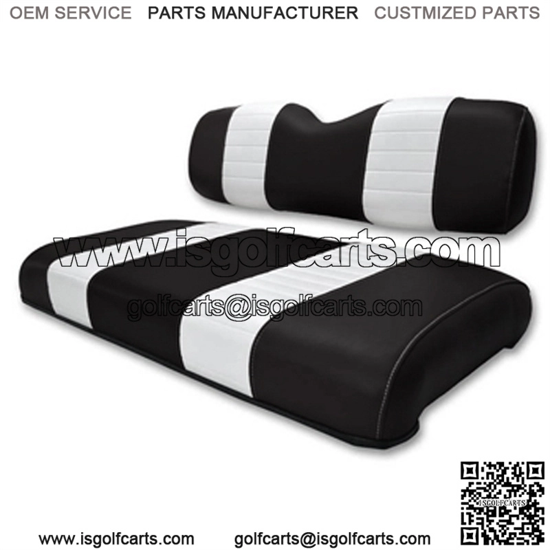 Dress up the look of your golf cart today, with this two-tone replacement seat cushion set! Each set includes the complete seat assembly: foam, plywood, and a vinyl cover.Specifications:Fits Yamaha G9Black with white center stripesMade from high-quality marine grade vinylThree-piece set (includes seat bottom and two individual backrests)Simply remove seat handles and seat hinges from your old seat bottom and re-attach to new seat