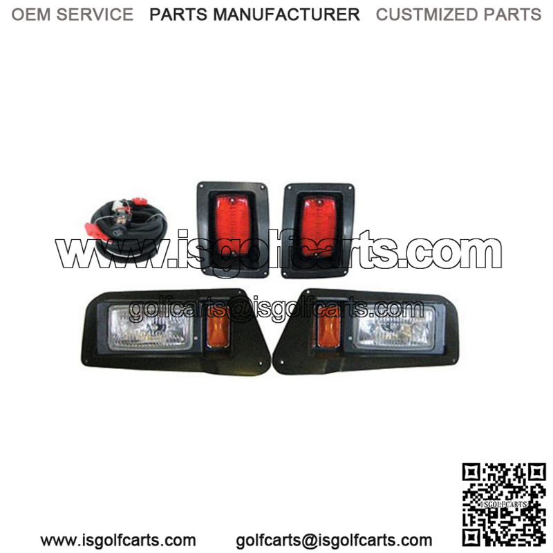 Yamaha Drive (2007 through 2016) Complete Adjustable Light Kit. Adjust headlights with the turn of a screw. High quality and easy to install wiring harness. Bright halogen bulbs. Injected molded plastic bezels with tapered holes and stainless steel mounting hardware. 12V operation for gas or electric.