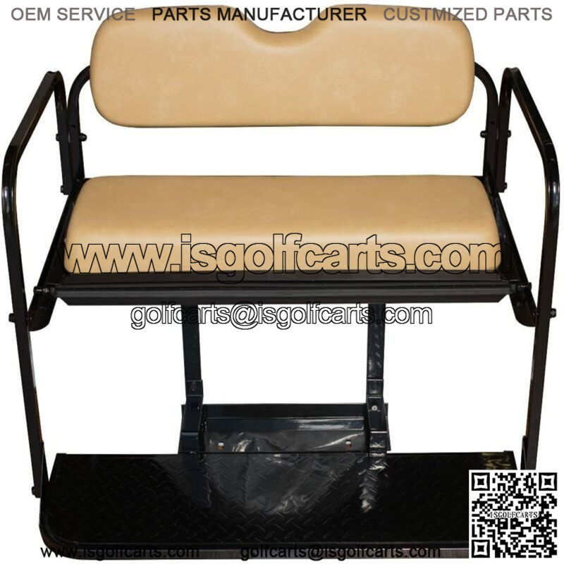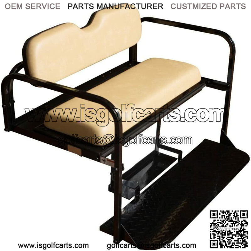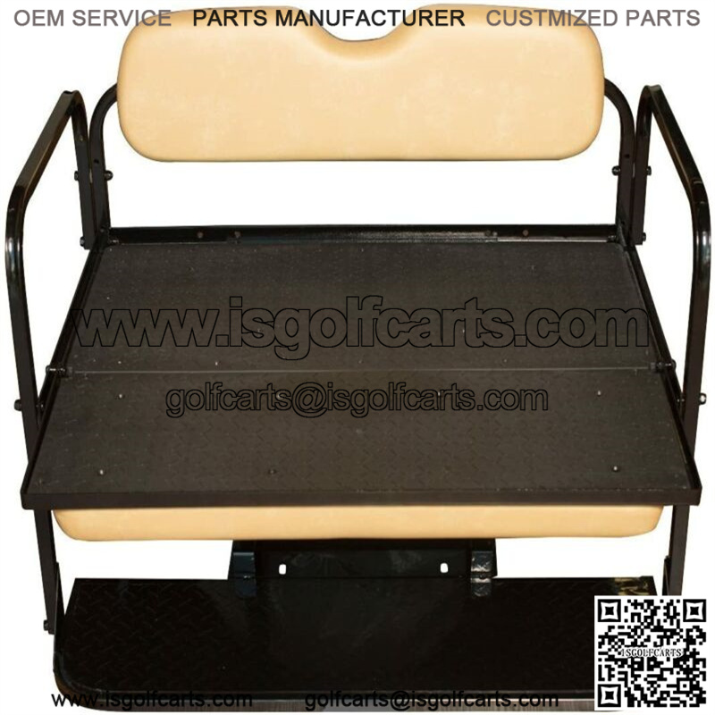 Factory Tan Color Cushions, Flip Folding Rear Seat Kit for all Yamaha G14, G16, G19, and G22 Golf Carts